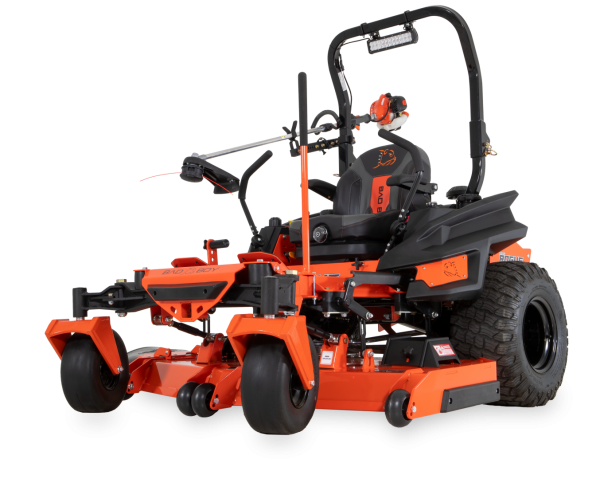 Heavy-gauge, all-steel, all-welded and fabricated 1.5˝ x 3˝ frame rail provides the backbone for years of durable service. Patented Dual Deck Support Isolators, with deck wear pad, helps minimize damage from side impacts. The sloped 1/4˝ deck with reinforced 3/8˝ sides features Deck Idler Arm and Spring with bearings for consistent tension and cutting speed. The PEER maintenance-free, internally lubricated spindles are made from strong ductile iron.