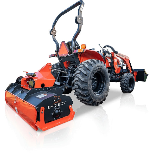 The Bad Boy 5055 Tractor’s tough three-point hitch and front loader quick attach and latch implements are built to our own industry-leading standards. Made from heavy-gauge, welded and fabricated steel, they’re more than ready to pull their weight around your property. The Bad Boy implement line-up includes: Box Blades, Land Graders, Rotary Tillers, Disc Harrows, Forks and Hitches, Front Grapples, Grader Blades, Landscape Rakes and Rotary Brush Cutters. They’re built for a lifetime of work around the field and farm and make getting the job done quicker and easier than ever before, especially with 55 horsepower under the hood.