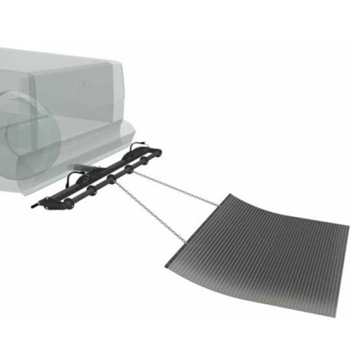 Rolls up behind your bumper to transport with unique crank, folding handle and lock system